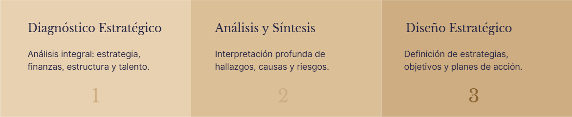 Brindar servicios de consultoría estratégica empresarial que fortalezcan la toma de decisiones directivas, la sostenibilidad financiera y el desarrollo del talento, mediante metodologías rigurosas, soluciones prácticas y un enfoque ético orientado a resultados medibles.